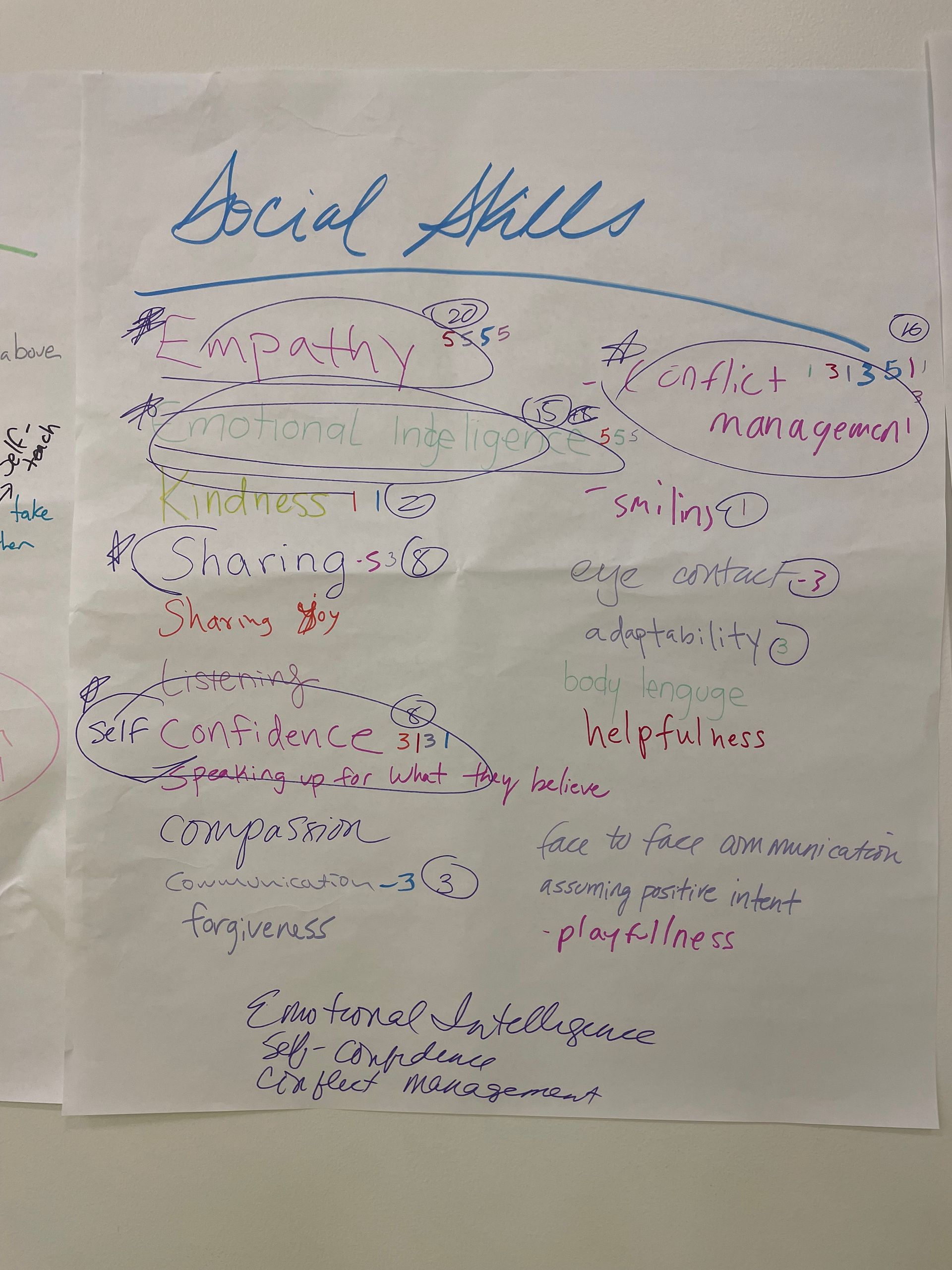 - Emotional Intelligence/Empathy - understanding and respecting themselves and others