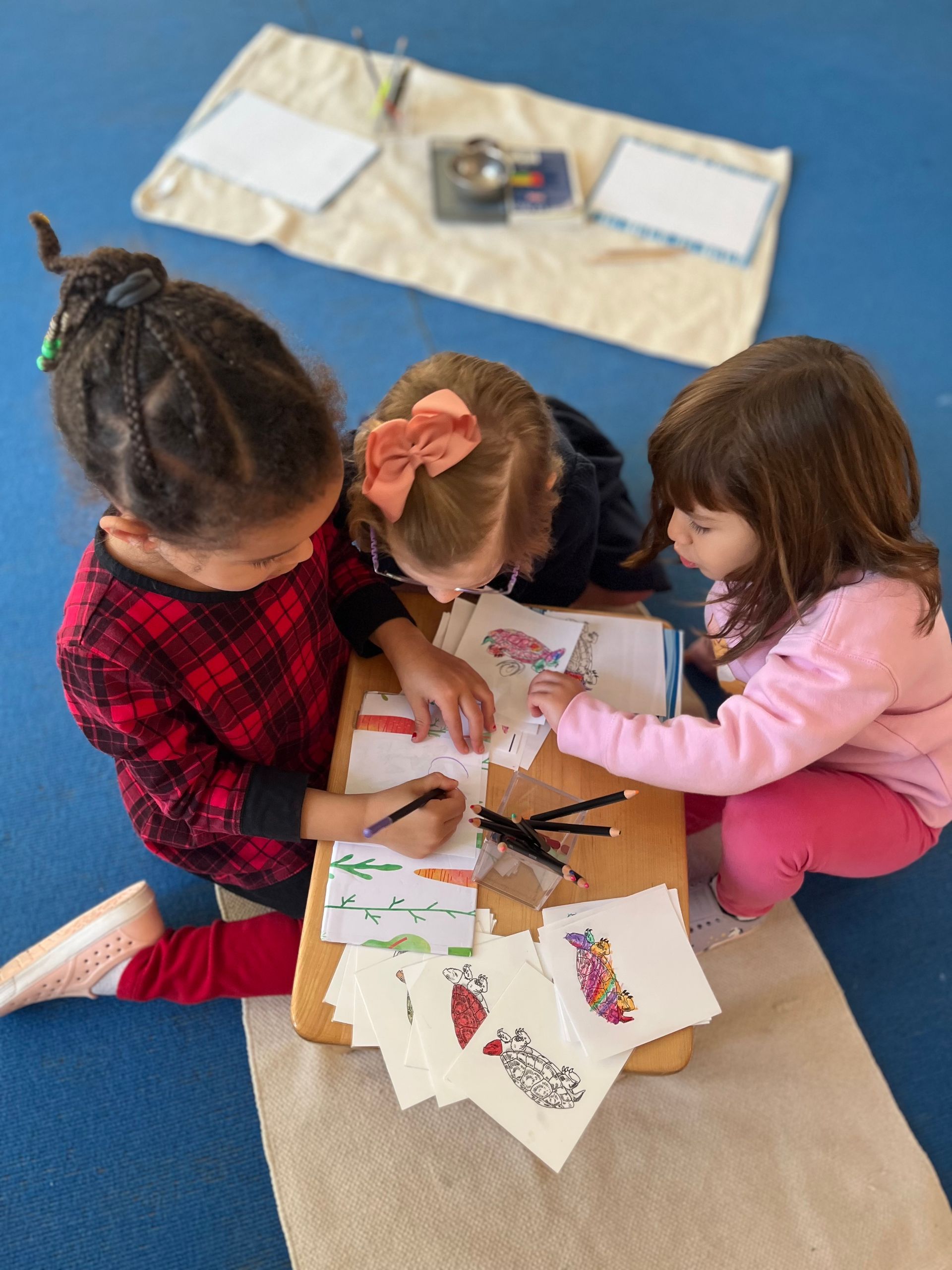 As the children enter into our lovingly and scientifically prepared environments each day, they intuitively understand that these classrooms were crafted with their needs in mind. The beautiful and orderly spaces invite engagement. The art and materials are displayed so that they may be easily enjoyed by the children, with minimal adult help.
